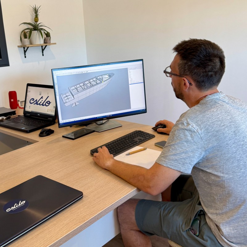 Chez Estilo, chaque étape est maîtrisée en circuit court : de l’idée au bateau fini, tout est conçu et fabriqué dans notre chantier hyérois.